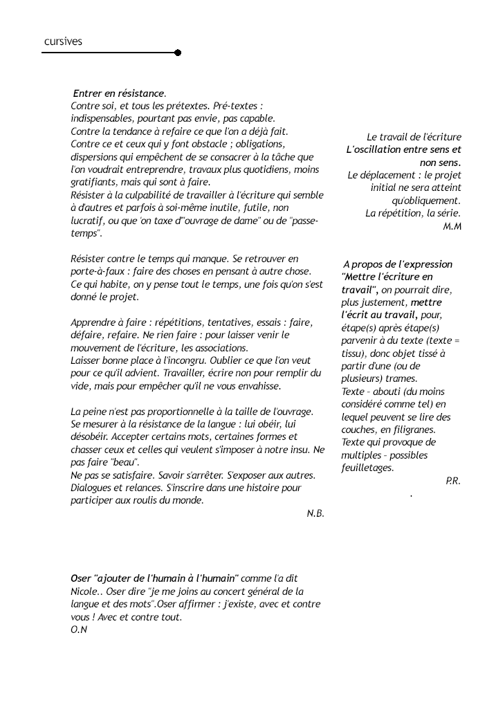 | Cursives n°59 "Mettre l'écriture en travail"